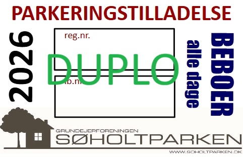 DUPLO har tryk på begge sider, som gør at den kun kan anvendes i en bil ad gangen og derfor på den måde sikrer, at den ene bil altid parkeres på egen matrikel. Det er beboerens ansvar, at vende kortet med den rigtige side udad.